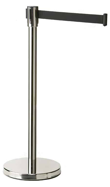 BARRIÈRE DE DÉLIMITATION A CEINTURE RÉTRACTILE SUR SOCLE INOX