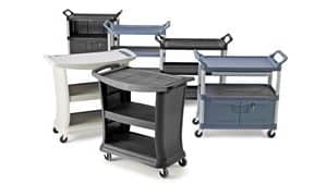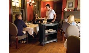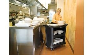 Le chariot de service noir Rubbermaid 9T68 Executive est doté de 3 étagères, sa capacité de charge est de 135 kg et il mesure 51 cm x 97 cm. Avec un plateau d’une capacité de charge accrue de 20 %, son style élégant et contemporain est idéal en salle et en cuisine. Sa structure résistante permet à chaque étagère de supporter 45 kg, structure renforcée par des panneaux d’habillage et des pare-chocs solides. Surface lisse facile à nettoyer et à entretenir