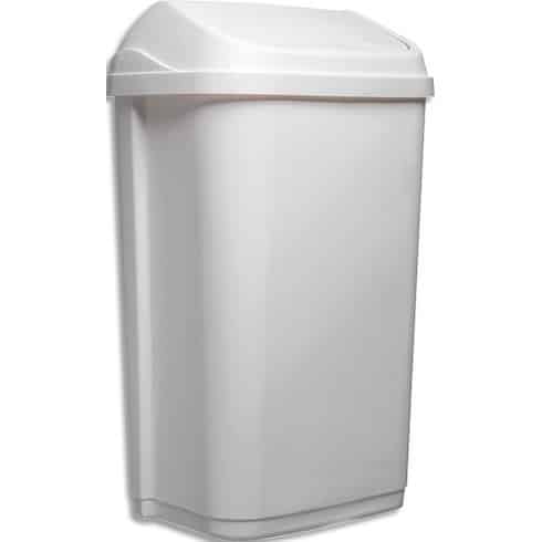 Le couvercle en place dissimule le bord du sac à déchets tandis que la large ouverture permet le dépôt propre et rapide des déchets. Le couvercle basculant est détachable et le collecteur avec couvercle se place parfaitement à flanc d’un mur.