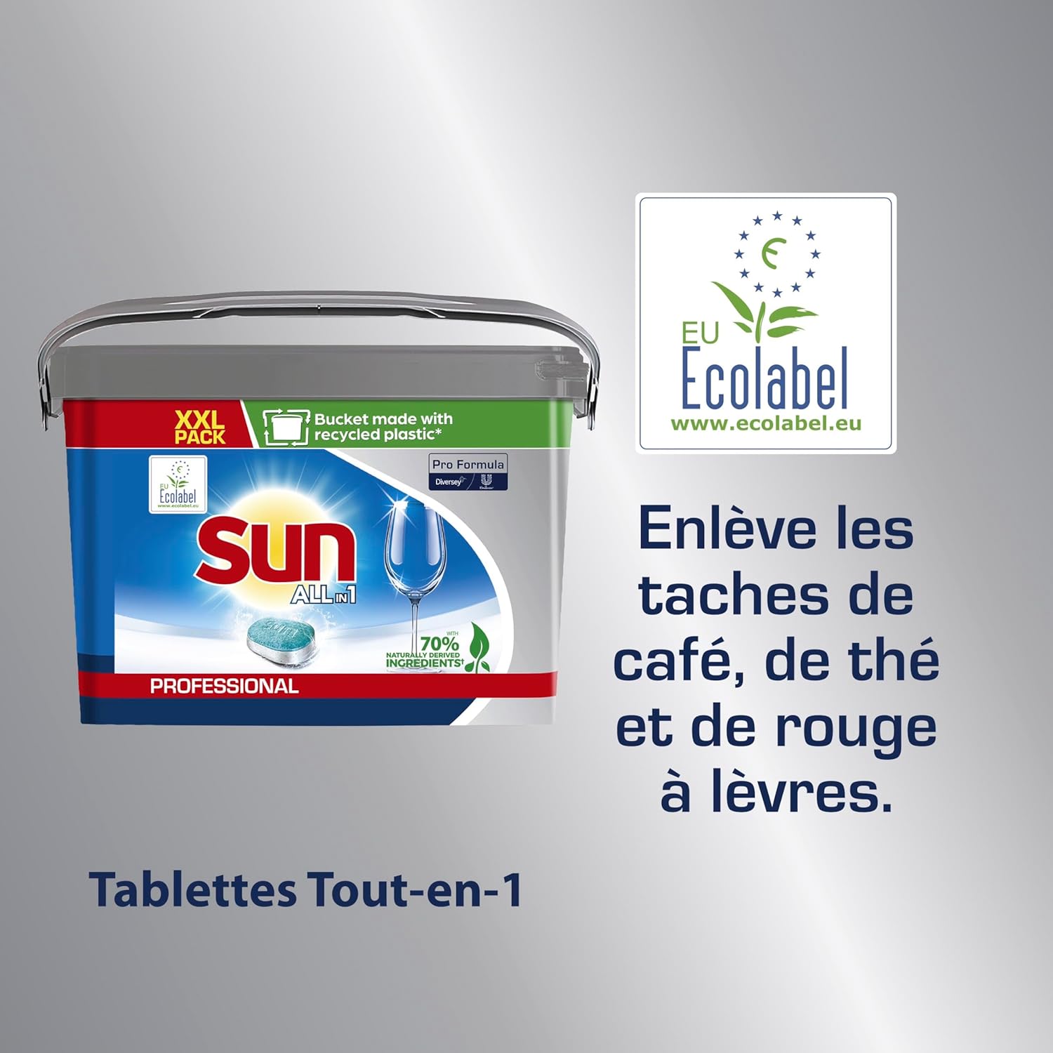 - Élimine les graisses tenaces, ainsi que les taches de café, thé et rouge à lèvres, sans prélavage nécessaire